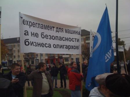 Константин Дорошок, инициатор проведения митинга, председатель "Справедливости" пояснил, что помимо протеста против повышения транспортного налога, участника акции выступают и за отмену принятого 10 сентября этого правительством РФ во главе с премьер-министром Владимиром Путиным нового технического регламента по безопасности, который, по сути, вводит запрет на эксплуатацию всех ранее везенных иномарок.