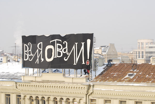 Движение сопротивления имени Петра Алексеева (ДСПА) в знак протеста против политики губернатора Санкт-Петербурга Валентины Матвиенко провело акцию на Невском проспекте. Активисты вывесили на доме баннер «Валя, отвали». «Хуже губернатора, чем Валентина Ивановна Матвиенко, представить себя сложно», - отметили они в своем заявлении. Оппозиционеры напомнили о разрушении исторического центра города и преступной халатности чиновников, по вине которых Северная столица бедствует каждую зиму, а люди гибнут и калечатся.